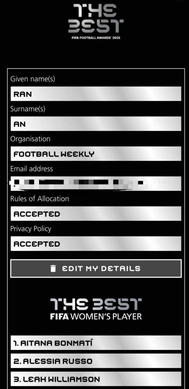 【世界最佳女足守门员选票】