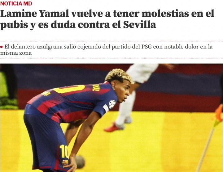 10月03日讯 据《世界体育报》最新消息,巴萨球星亚马尔的耻骨区域再次出现严重不适,球员出战塞维利亚成疑。