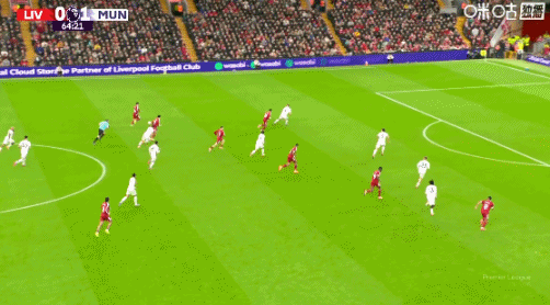 10月20日讯 英超第8轮,利物浦vs曼联,赛事 第64分钟,苏超直播加克波传中,曼联后场球员冒顶,萨拉赫无人防卫 下射球 偏了。