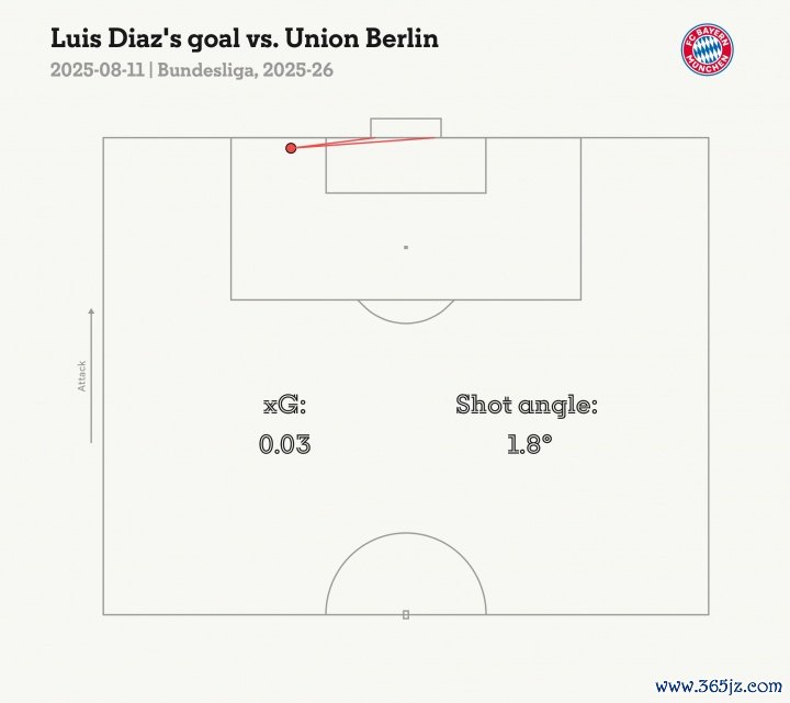 11月10日讯 德甲第10轮,拜仁客场应战 2-2平柏林联合,本场迪亚斯攻入一记小角度神仙球。