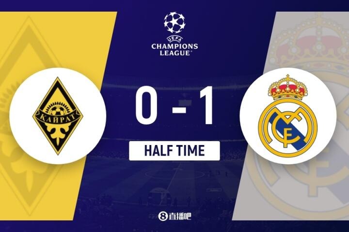 上半场没有补时,阿拉木图凯拉特0-1皇马。